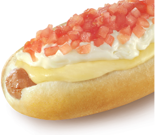 Sándwich tipo "completo" en base a vienesa sureña PF, Queso fundido, Tomate y Mayo "a Punto".